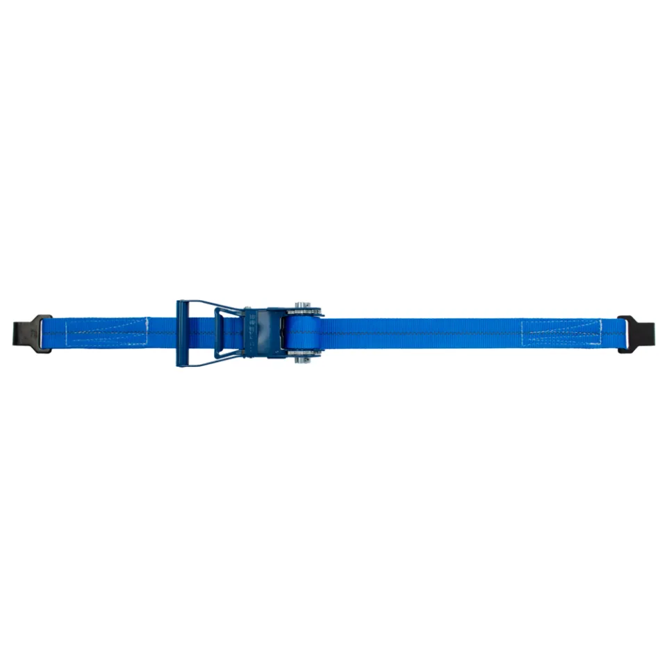 The epoxy-coated blue finish protects the strap from corrosion and weather damage, ensuring long-lasting durability. The Dual Control Release mechanism lets users release tension slowly. This provides a safe and controlled way to unload, especially for delicate or unstable loads. This ratchet strap has a Double Slider Mechanism and better pre-tension capabilities. It provides more security and control. Flatbed truck drivers can trust that their cargo will stay stable during the journey.